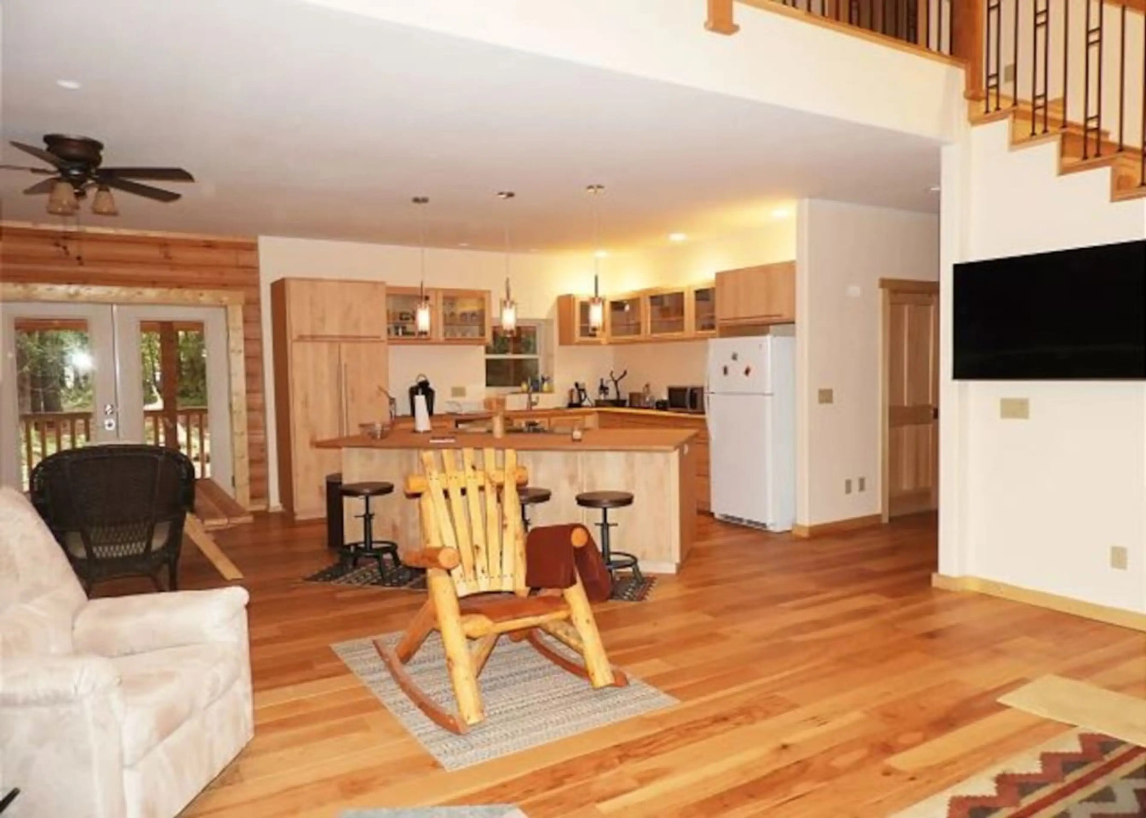 Heaven In The Redoods This is a log cabin home nestled in the Redwoods. There is a spectacular view of Redwoods trees out of every window. The first floor of the home is available to rent which includes 2 bedrooms, 1 bathroom, living room, kitchen, dining area, laundry room, access to the back deck...